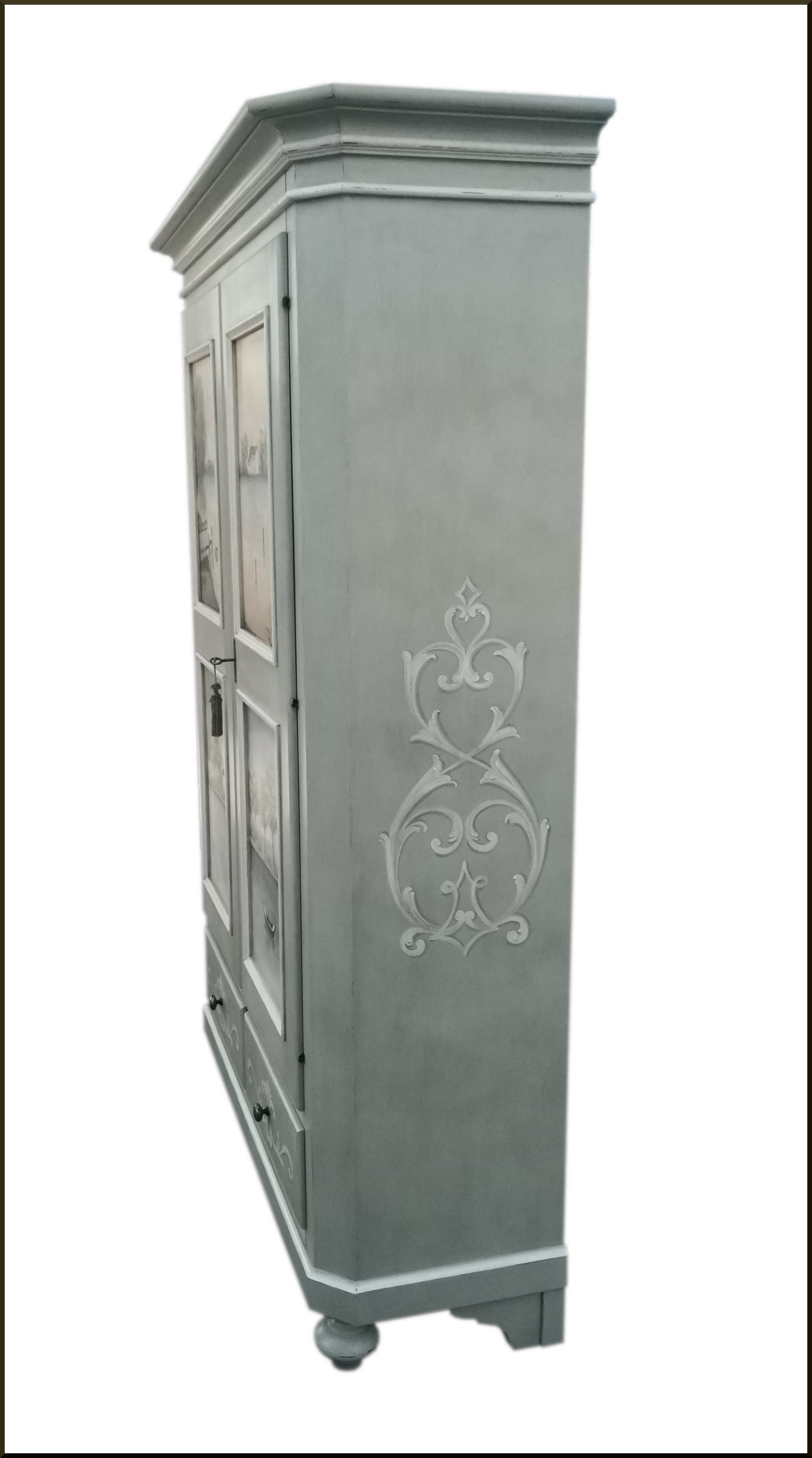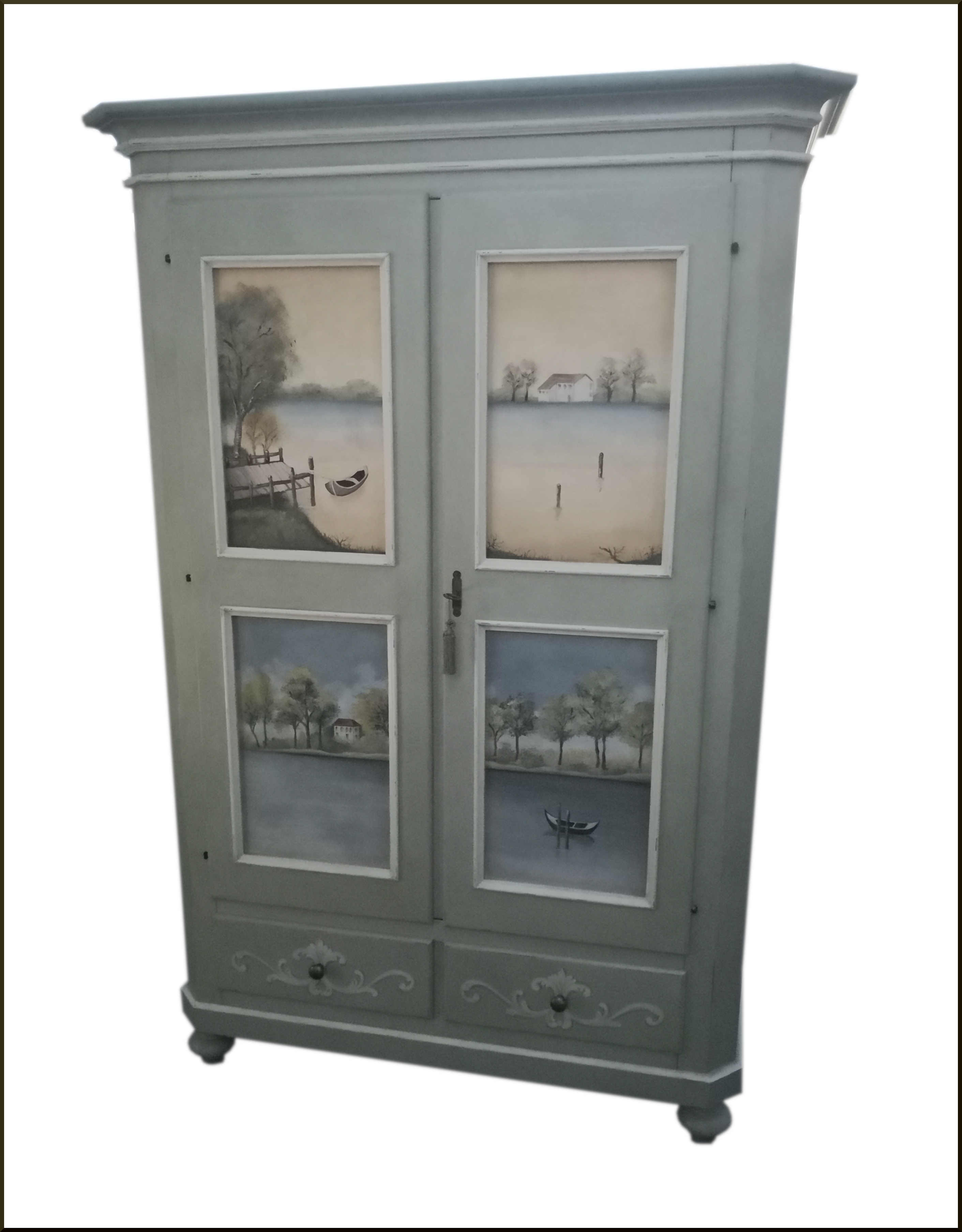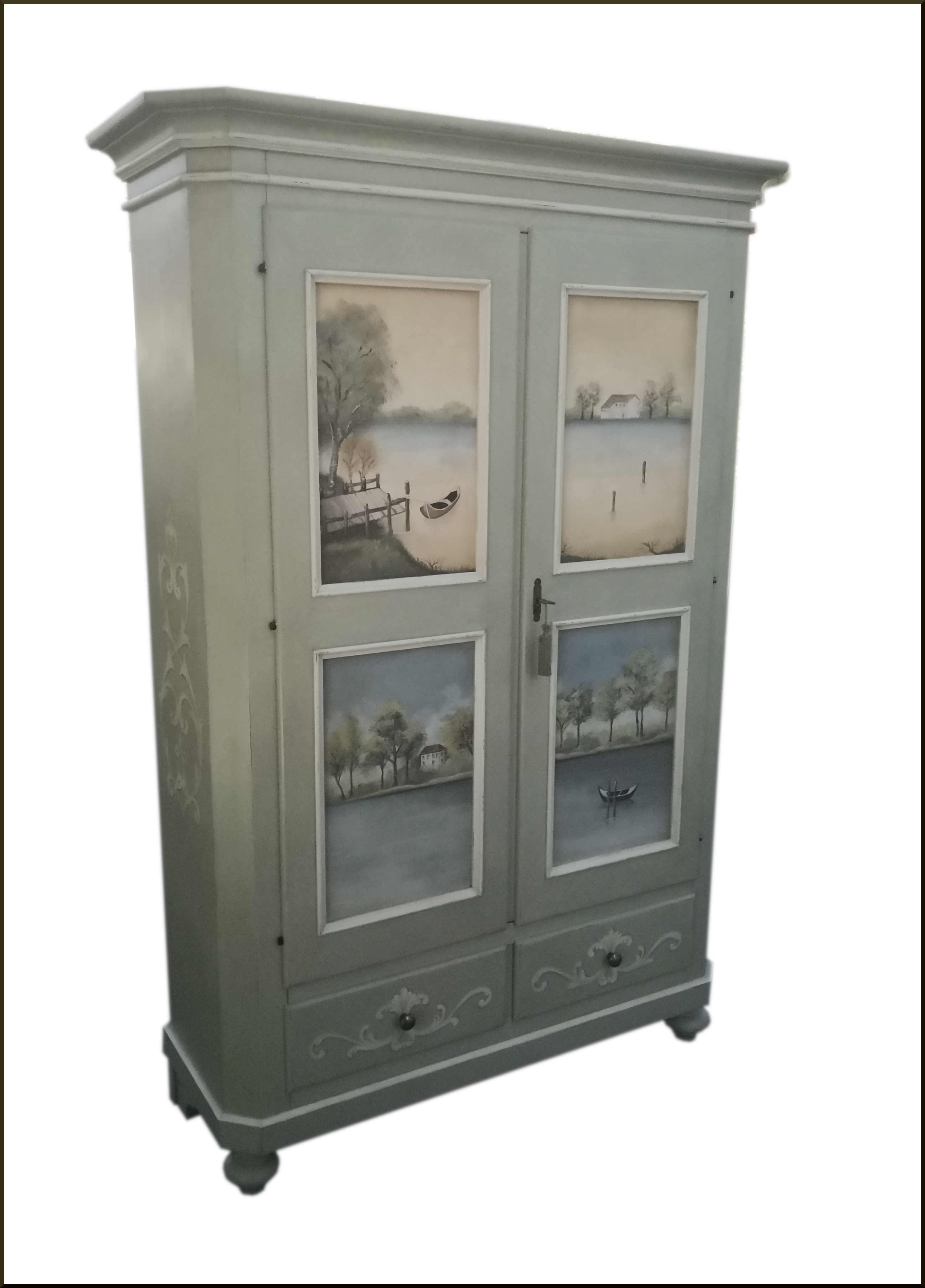 - Elegante armadio a due ante decorato e dipinto a mano con paesaggi lacustri
