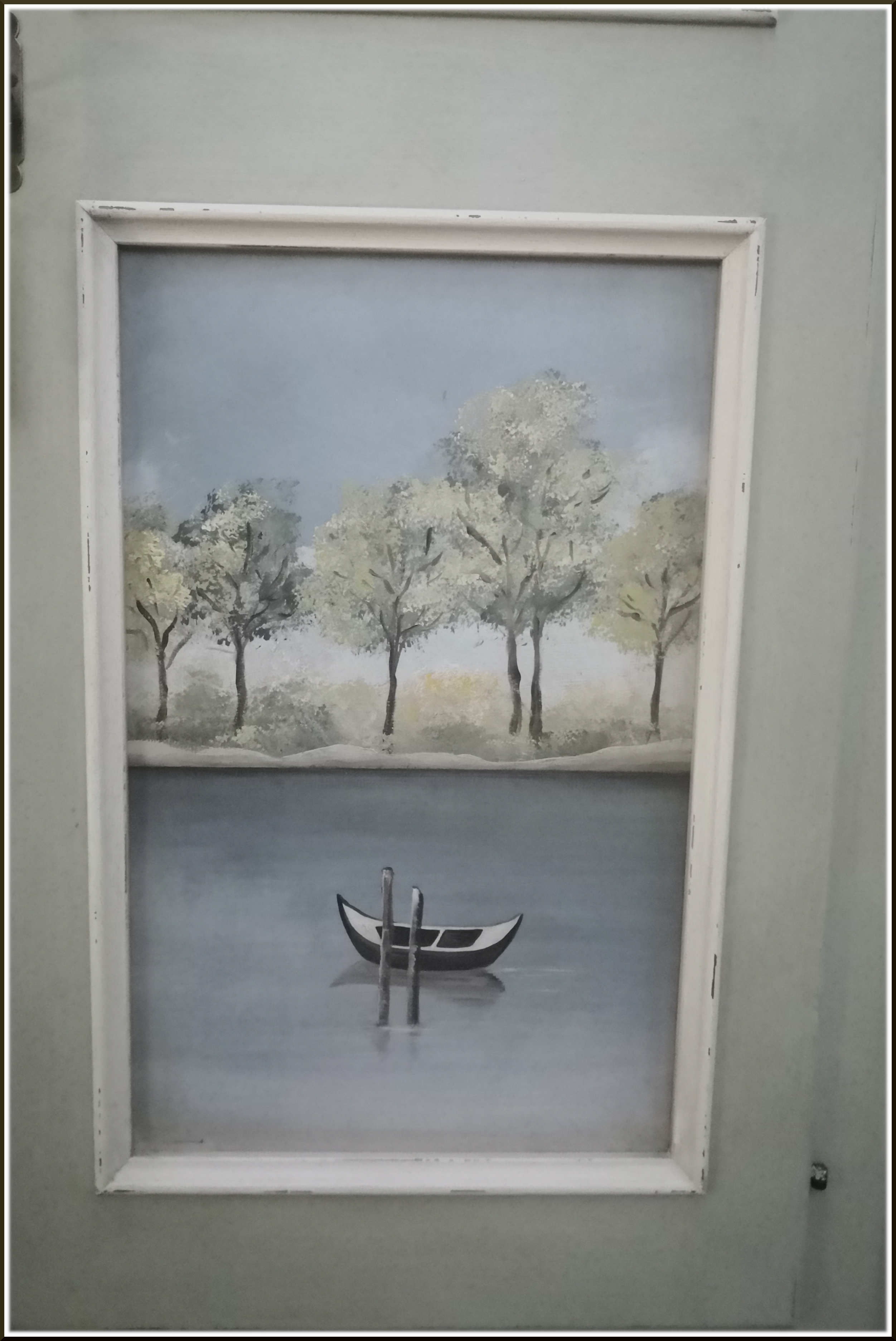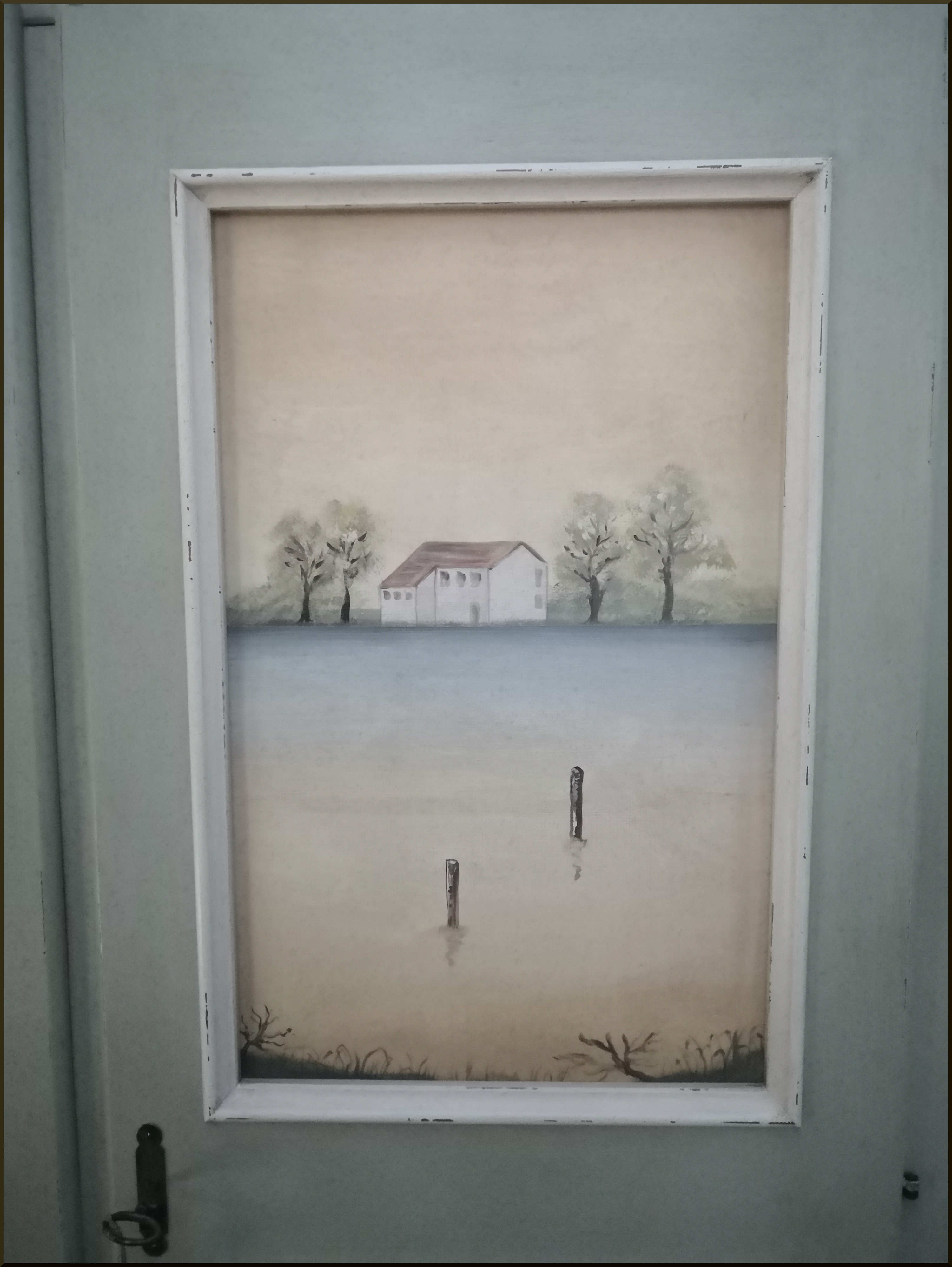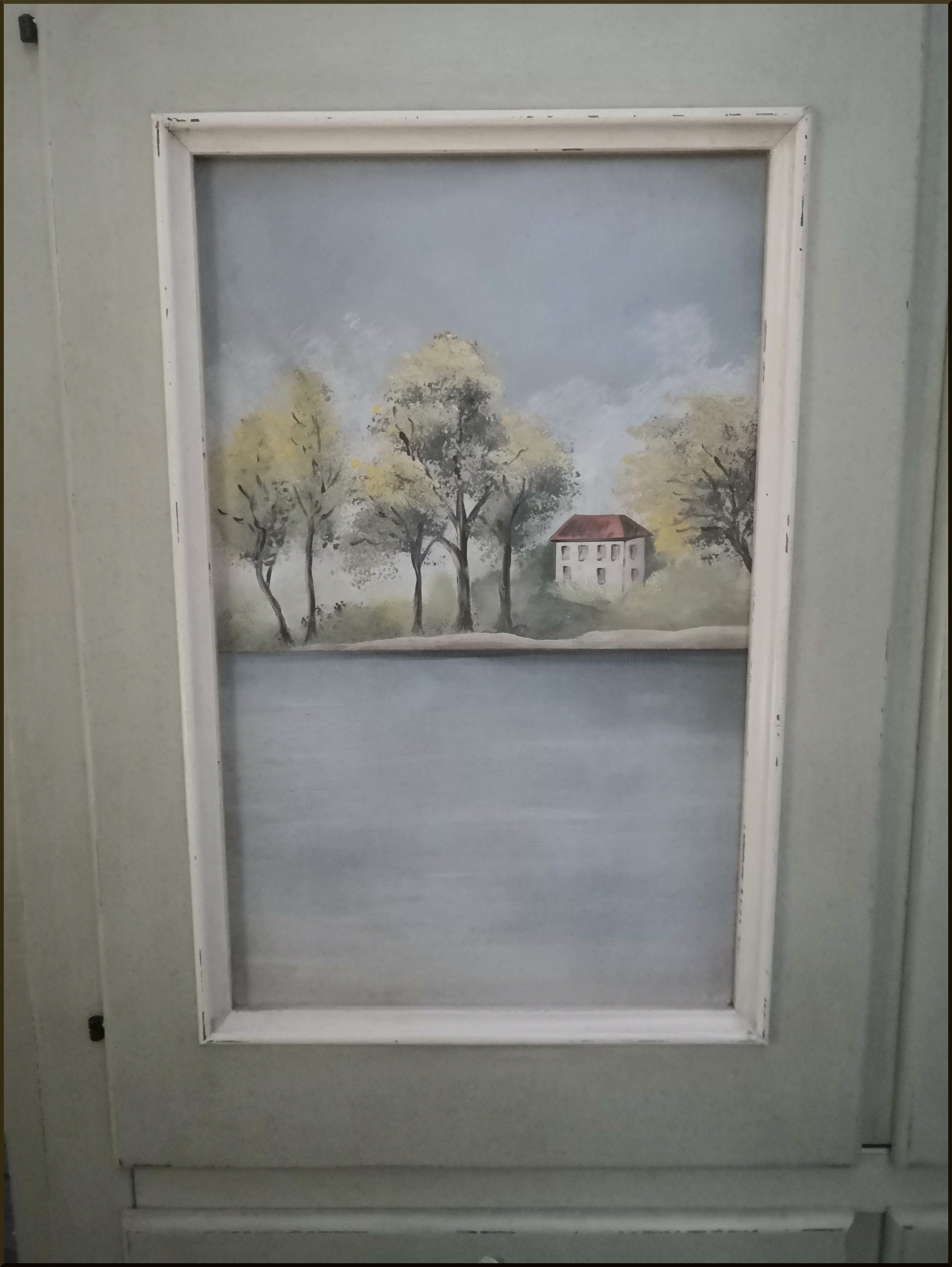 - Elegante armadio a due ante decorato e dipinto a mano con paesaggi lacustri