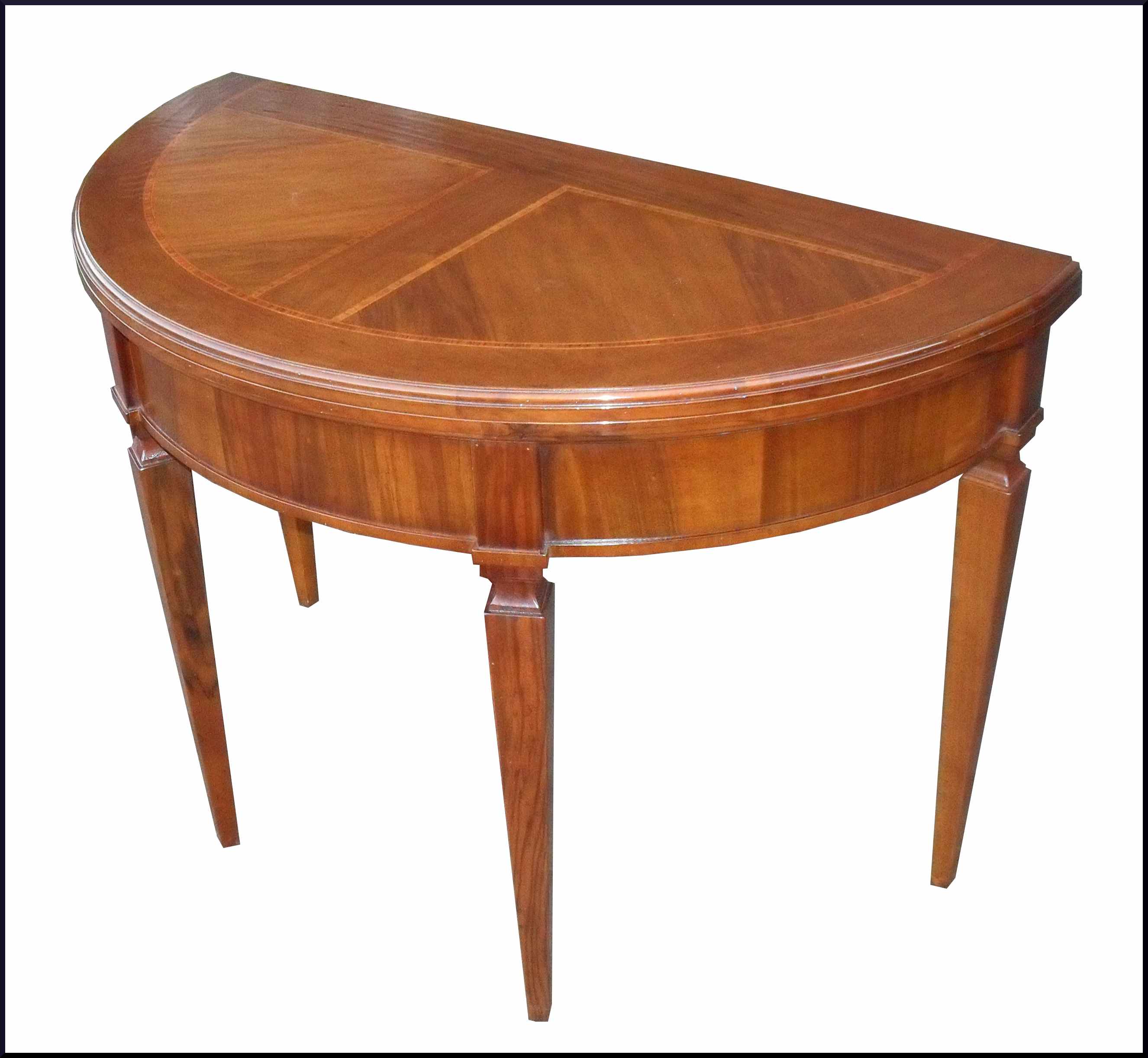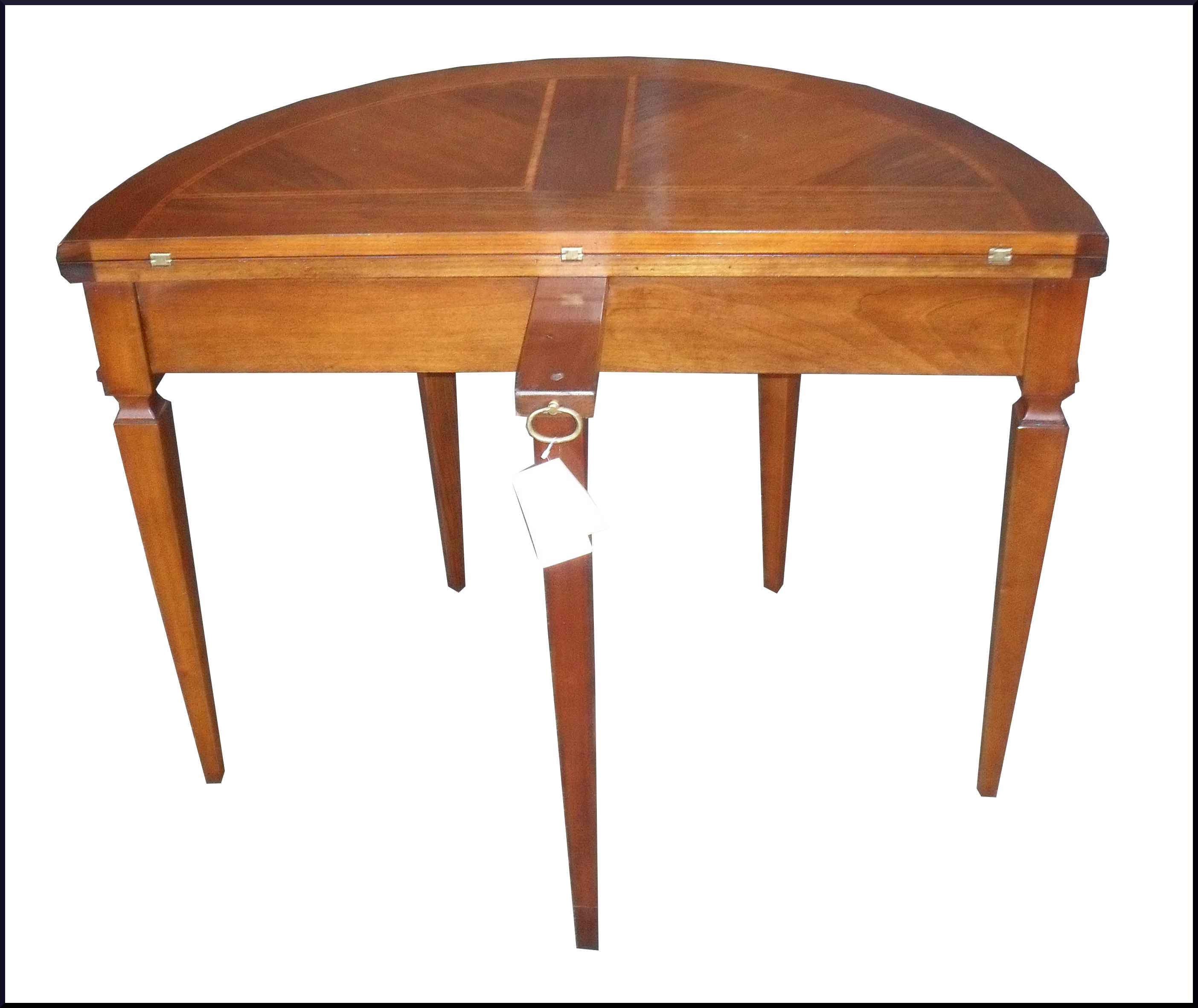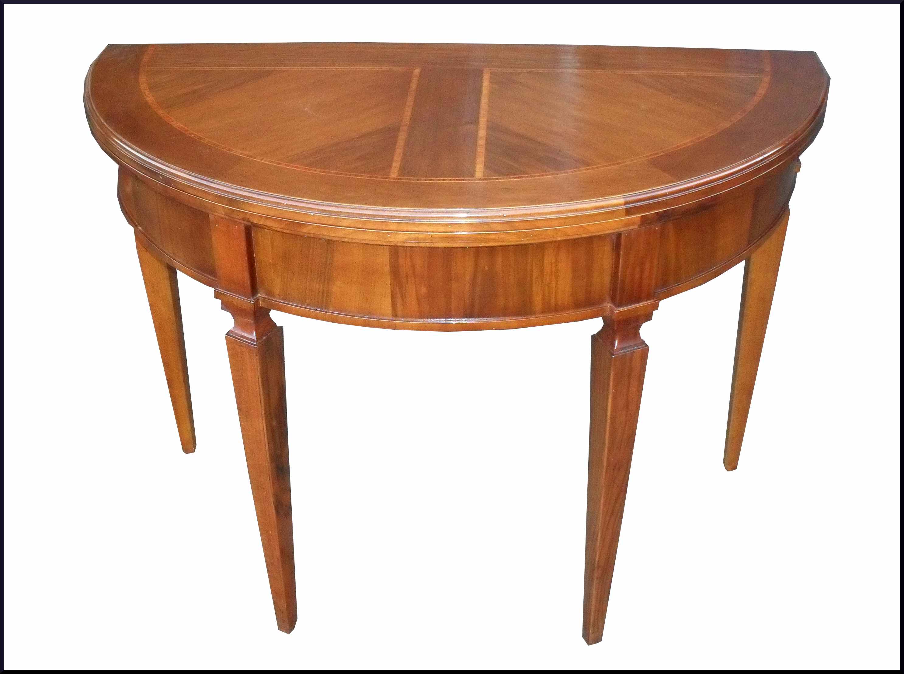 - Elegante tavolo artigianale con piano intarsiato apribile a mezzaluna