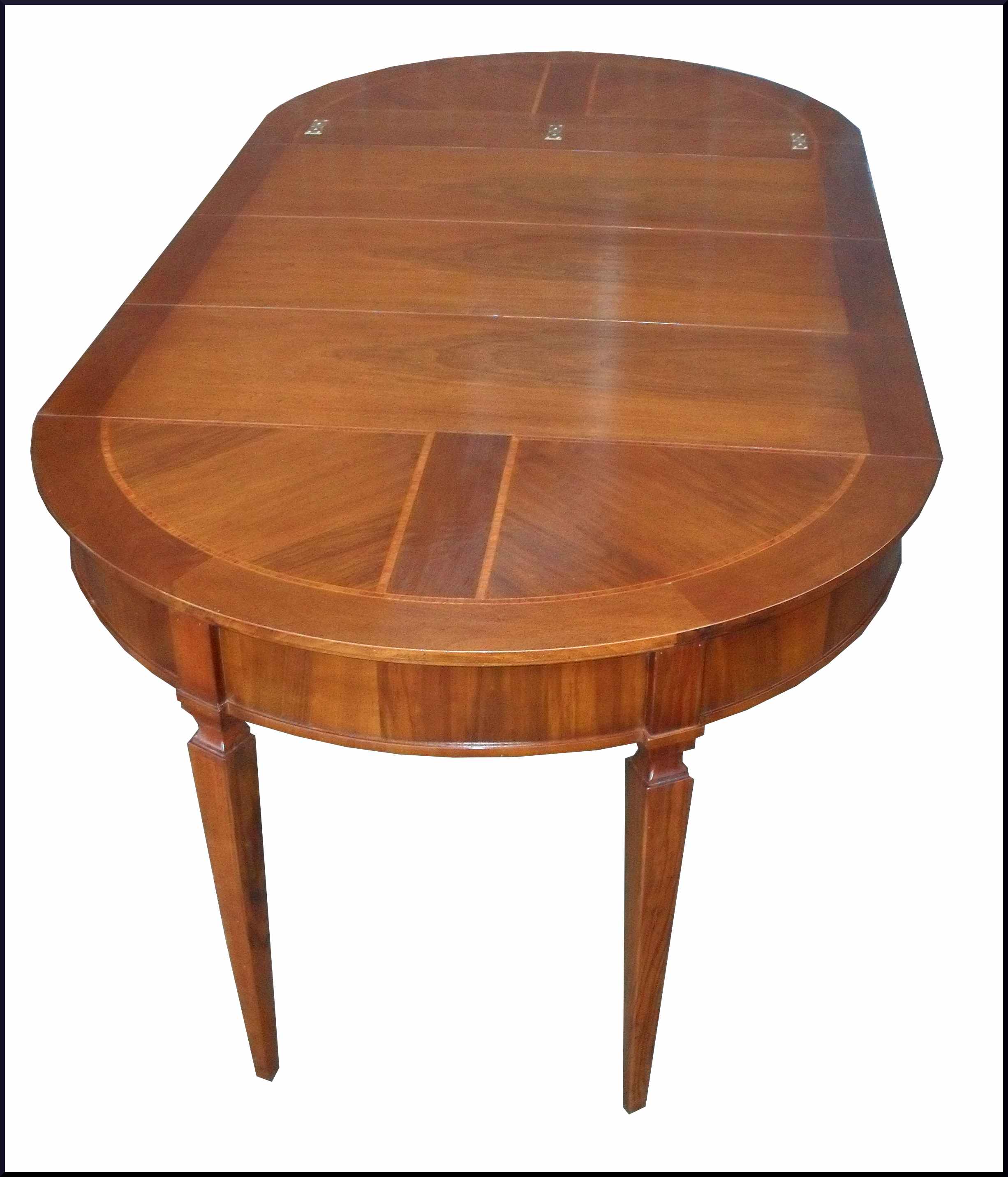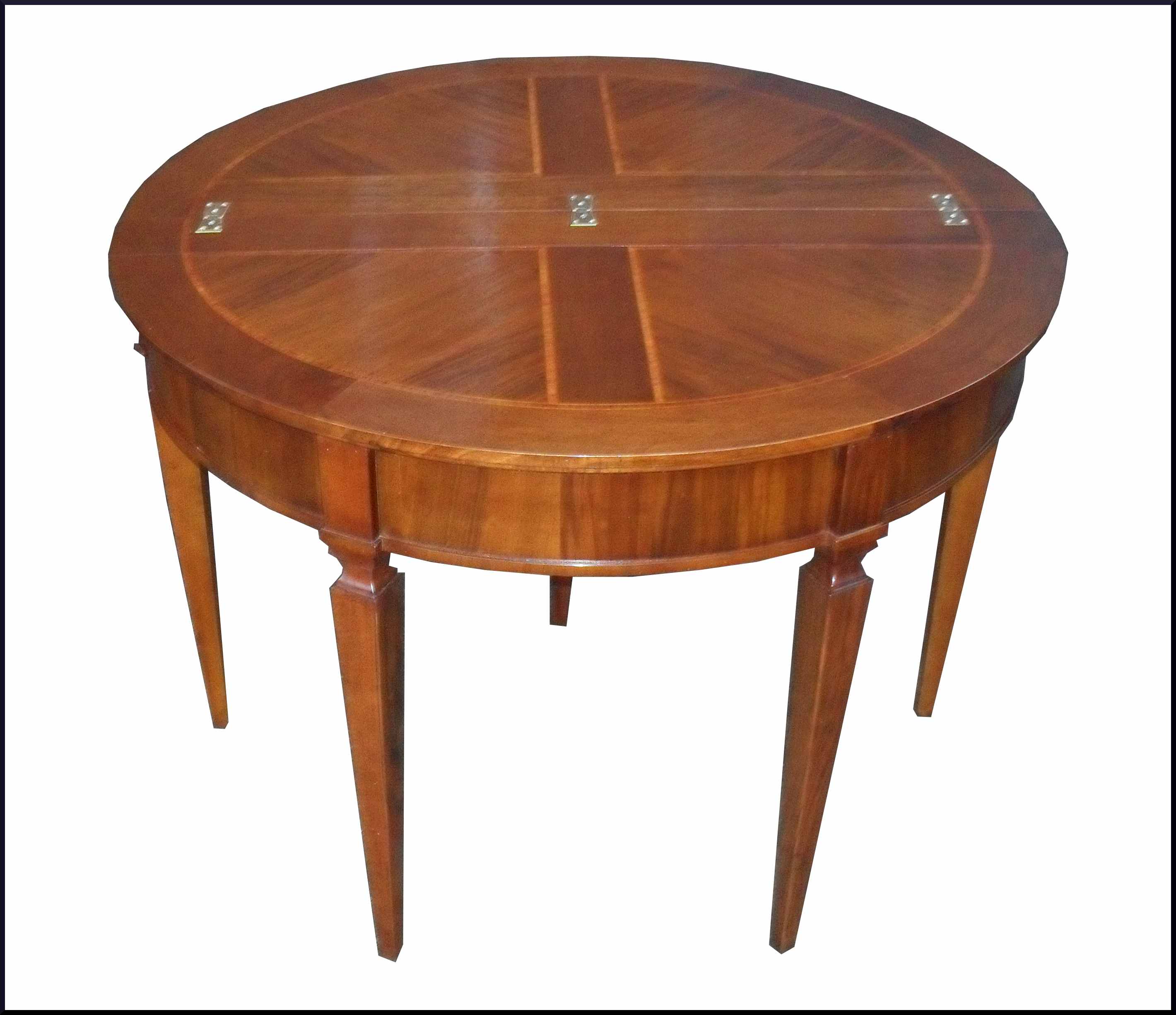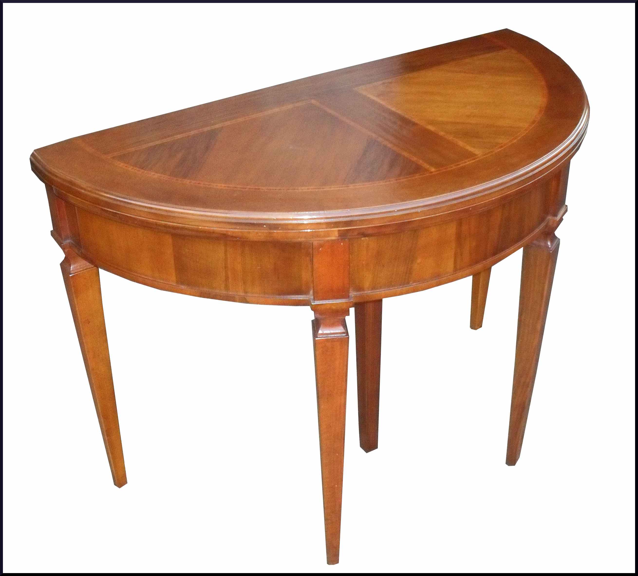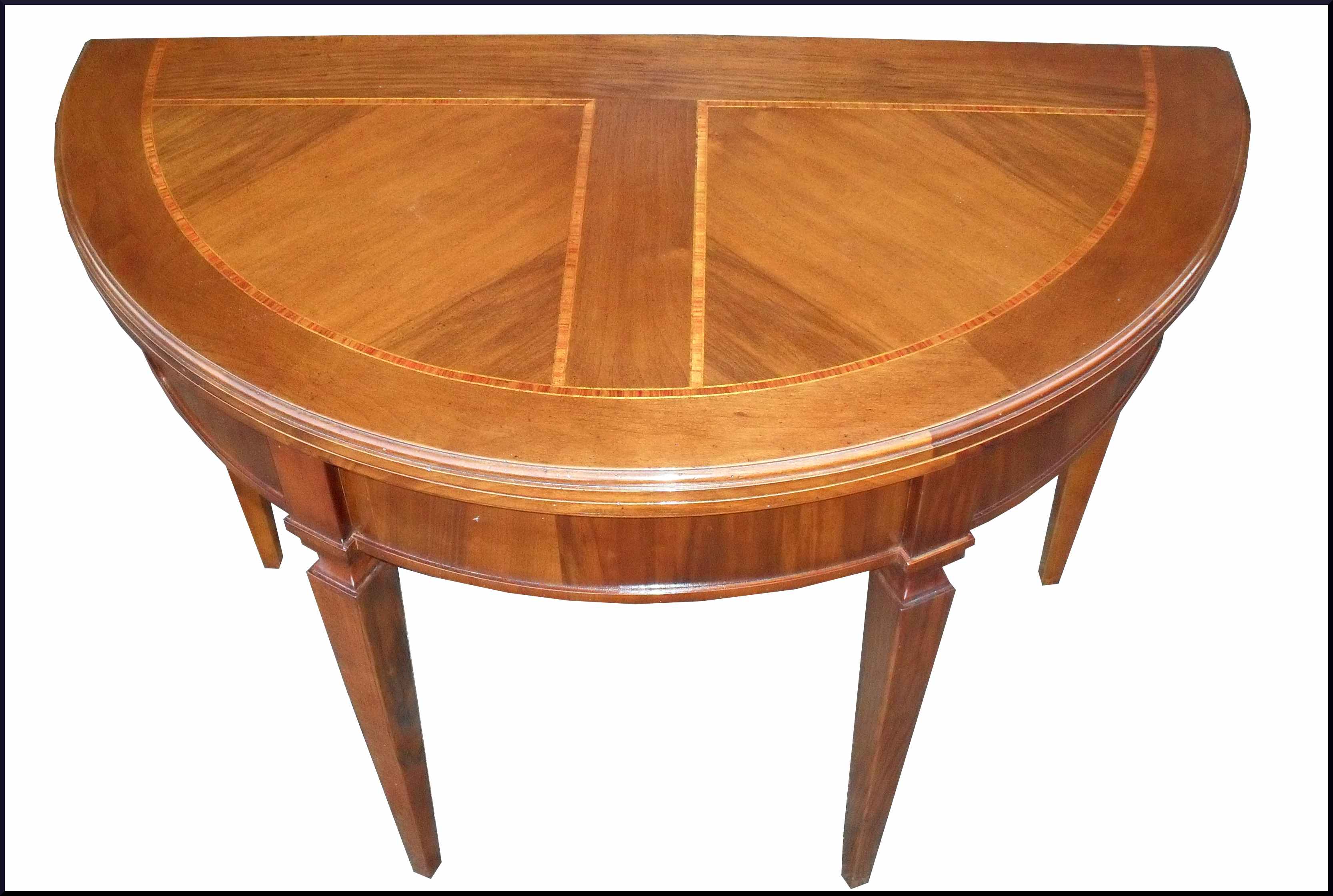 - Elegante tavolo artigianale con piano intarsiato apribile a mezzaluna