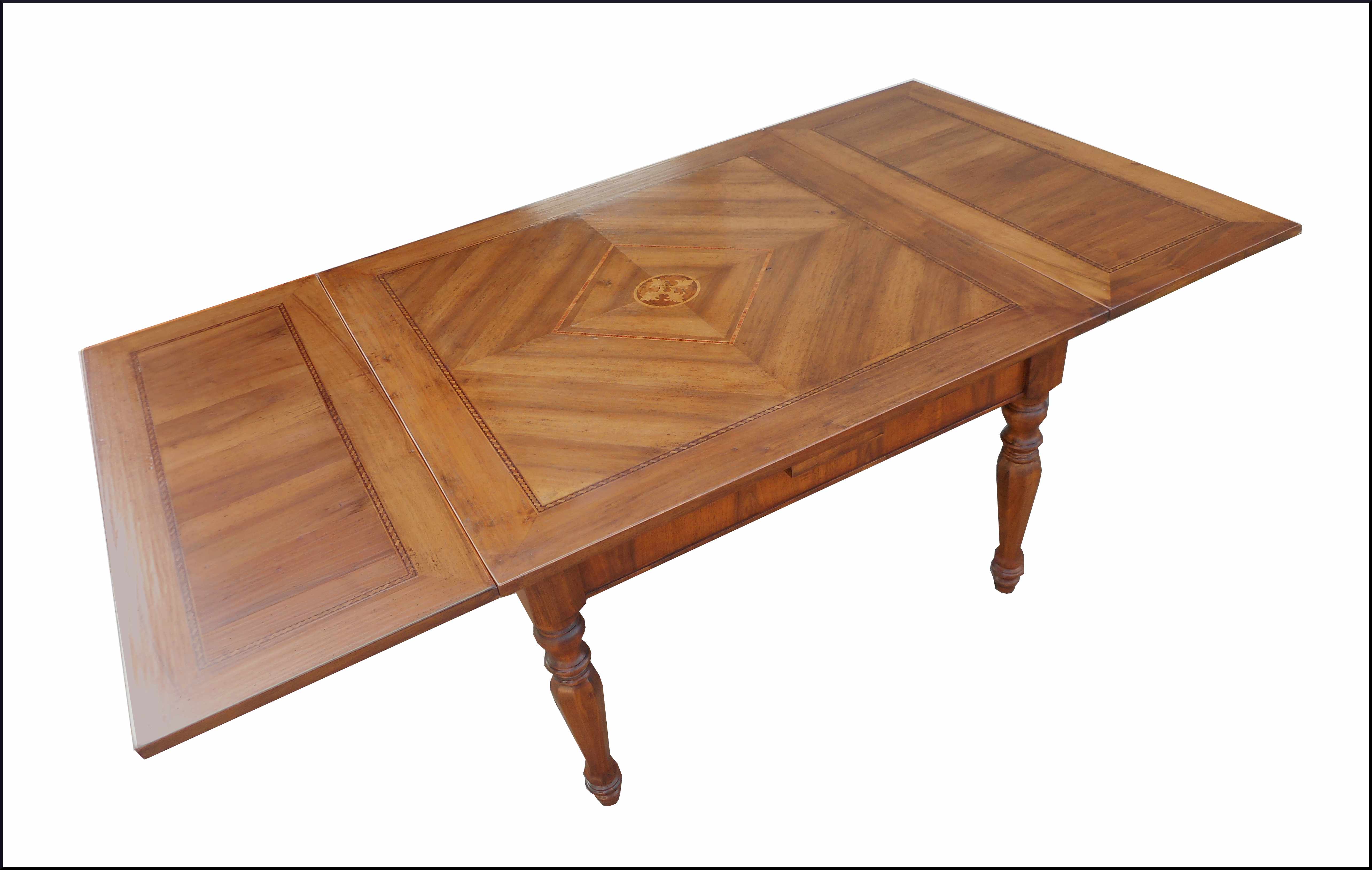 - Elegante tavolo quadrato allungabile con piano intarsiato